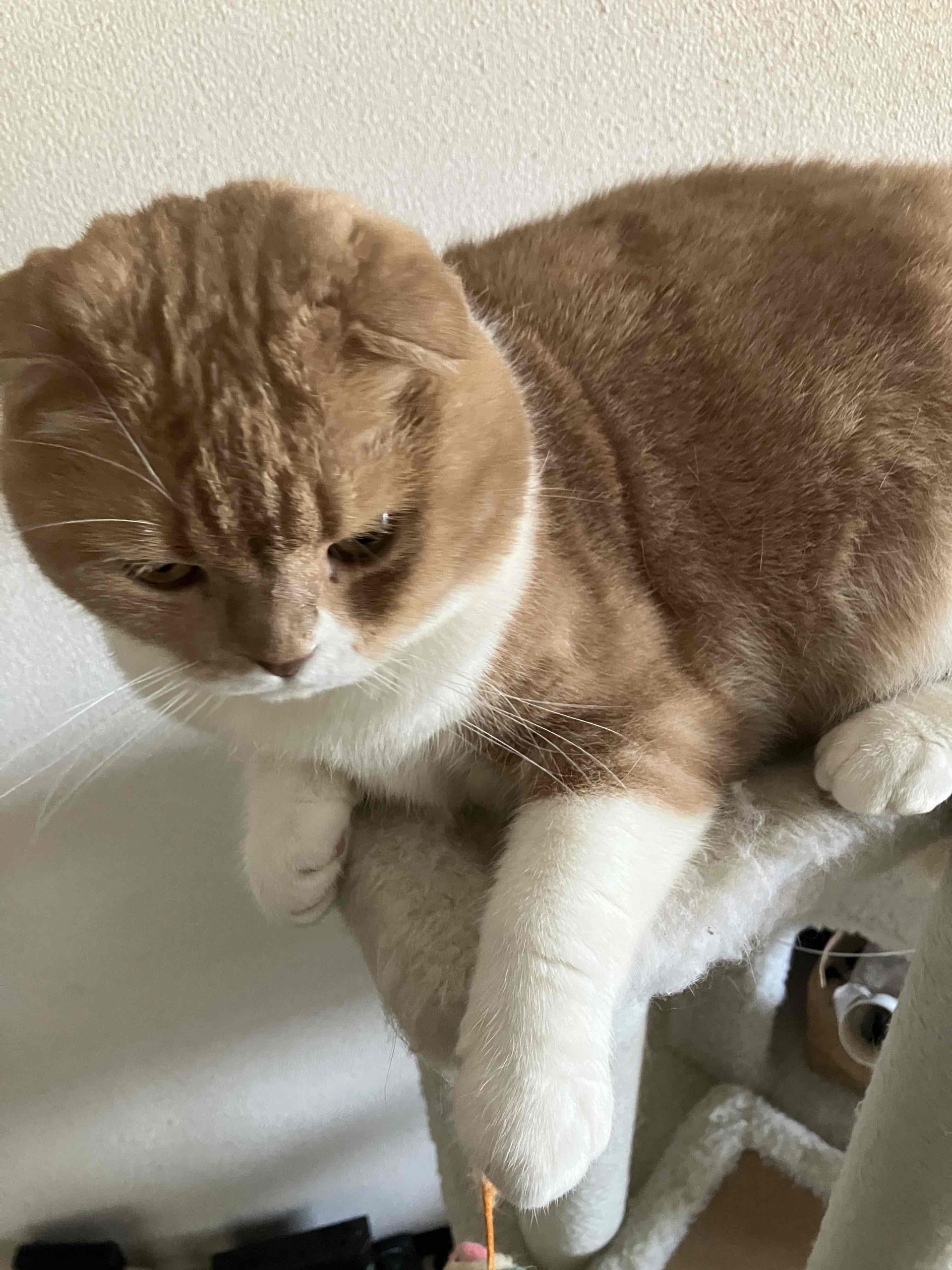 最近暖かくなってきたので、キャットタワーの上が居心地がいい様子🐈