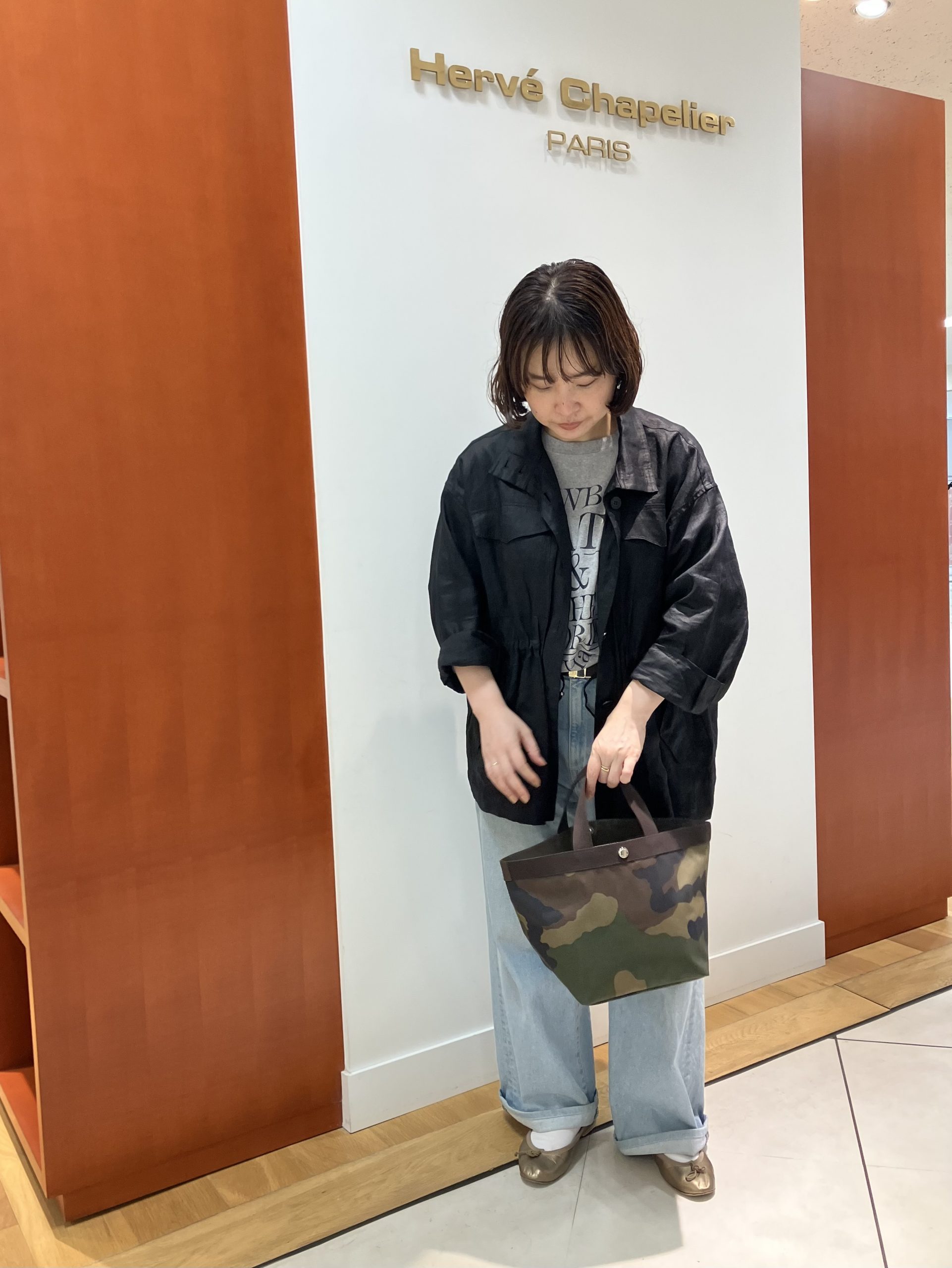 そして、シンプルなお洋服コーデにはカモフラージュ柄。個人的に好きな柄ですが