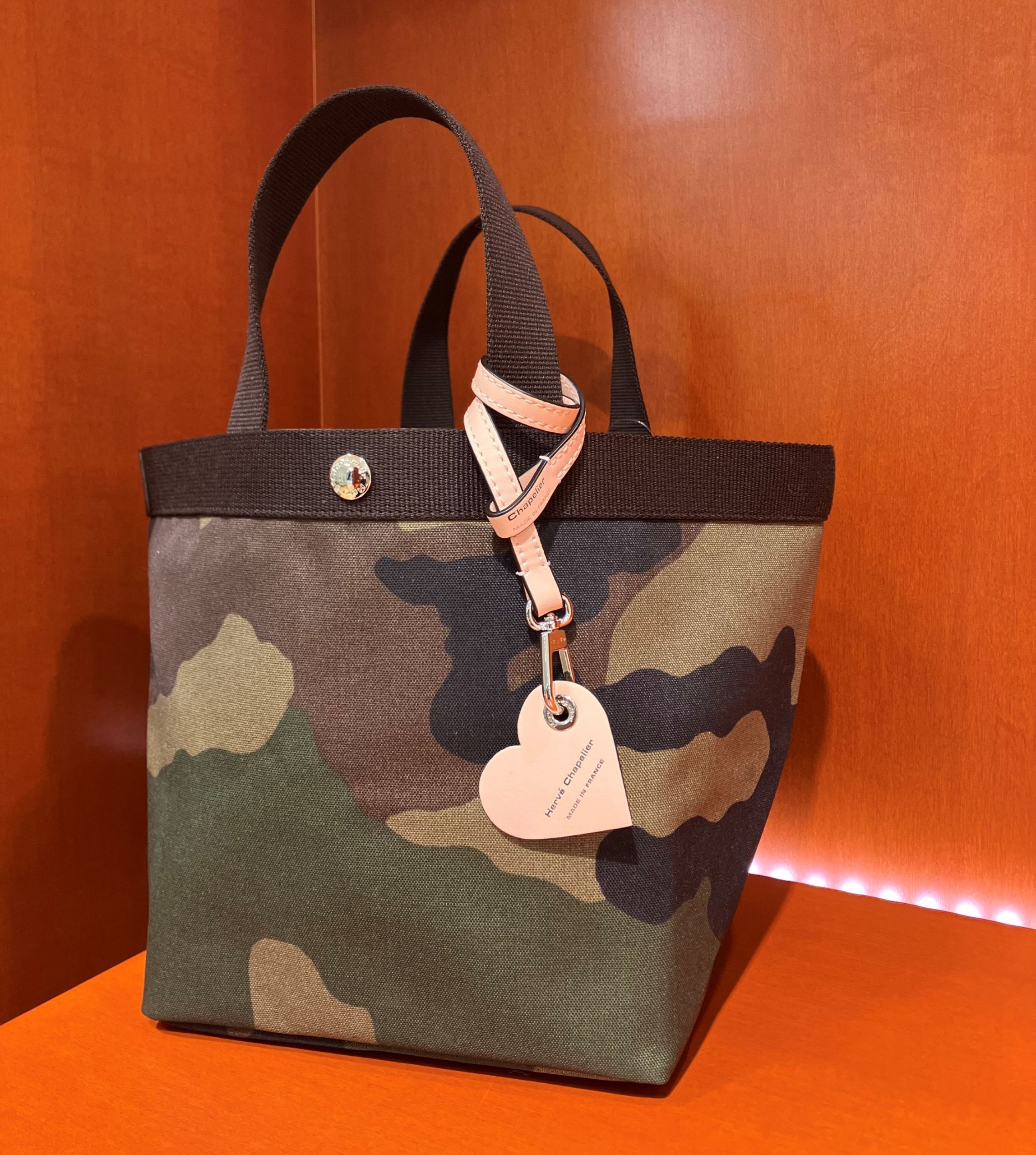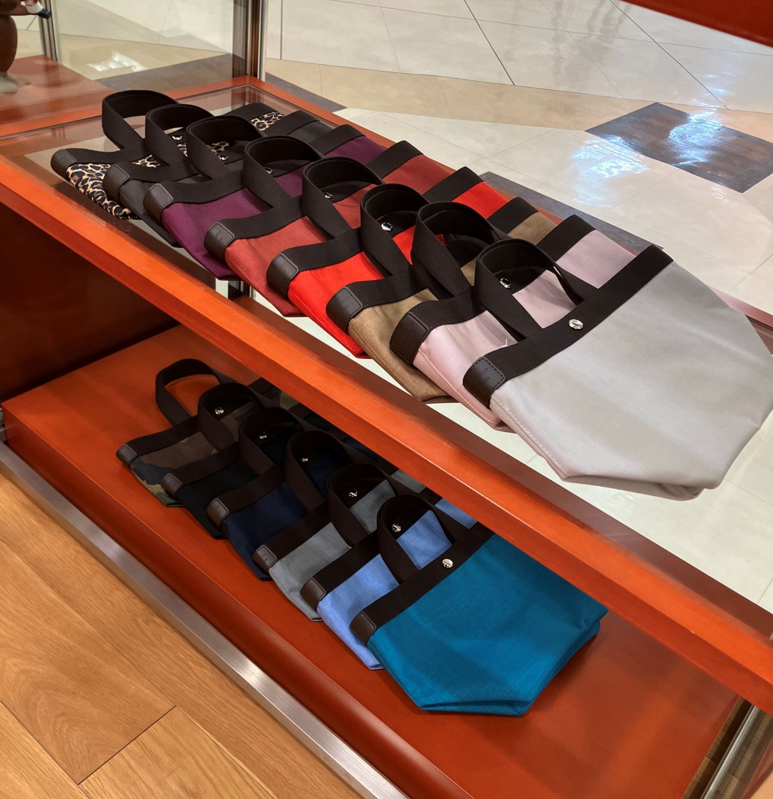 こちらは春夏の新色、サンギーヌ×モカ。オレンジカラーの発色が良く、小物で明るさを出したい方にも