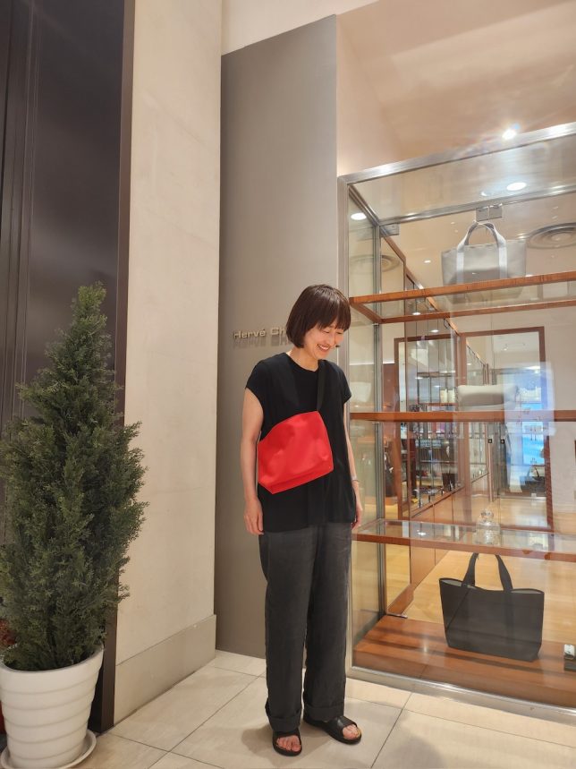 ストラップを結んで短く肩掛けするのもおすすめです!