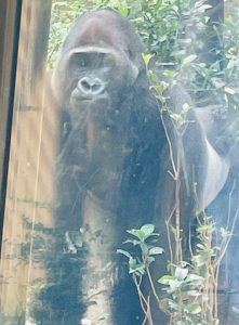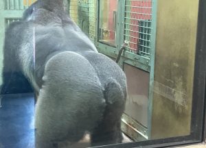 こちらはキンタロウのお父さんモモタロウのきれいなおしりです。御年39歳です。ゴリラの寿命が40年と言われますのでご長寿です。トリマーさんが入ってるかのような毛並みに感動です。かわいいお顔でした。九州には🦍はいませんので、貴重な機会に感謝です。