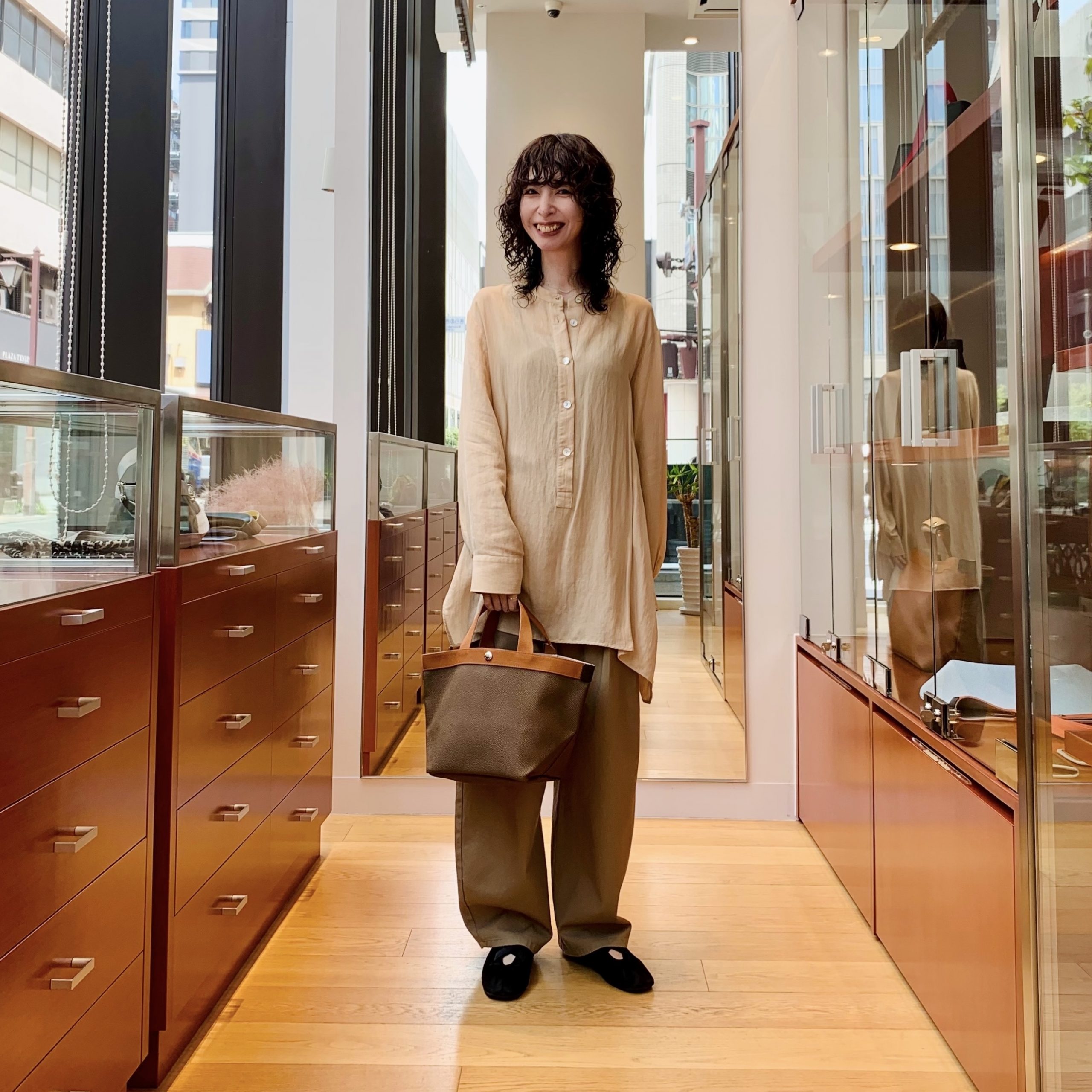 写真は洋服もワントーンに合わせていますが