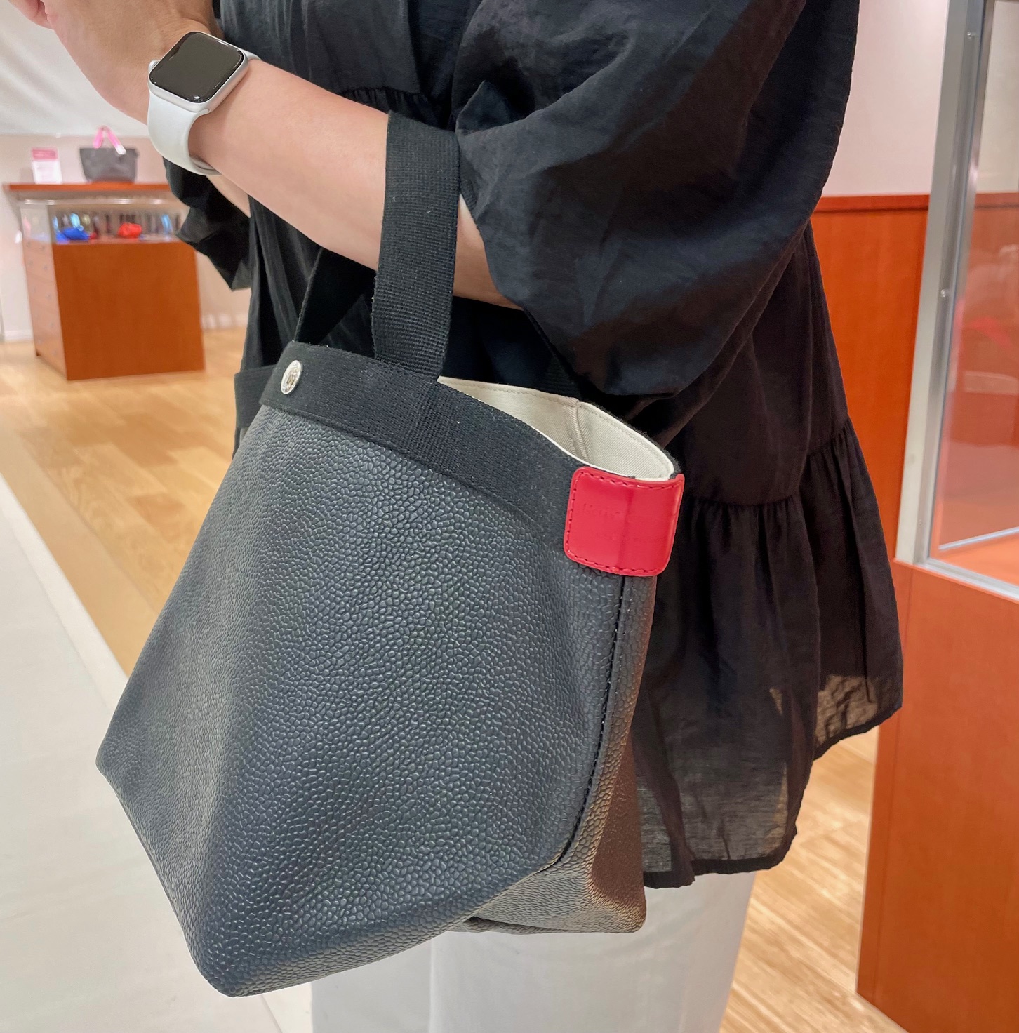 贅沢ですがレザータグにルージュ(赤色)をポイントにしてます