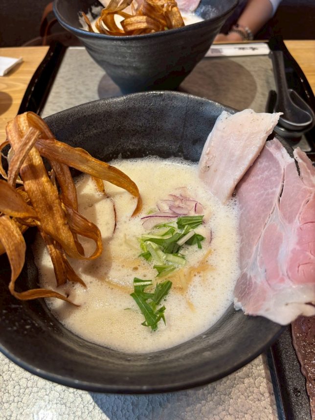 少し泡立った濃厚スープに麺がからんで美味しい