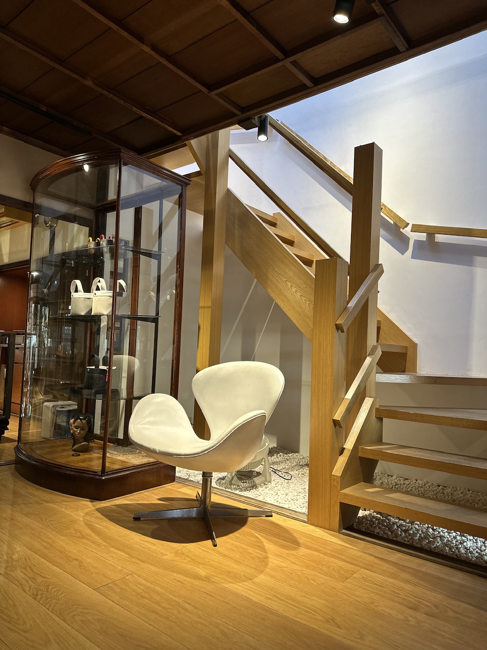 エルベのバッグにも合う素敵なお洋服がございますので、ぜひ2階も登ってみてください🪜