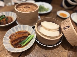 蒸しパンにお肉を包んで食べました