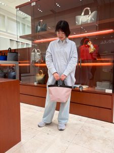 最近新宿タカシマヤではSサイズが人気です。ちまっとした可愛いサイズ感ながらお出掛けに必要な最低限の持ち物がしっかり収まります。(もちろん長財布もOK!)コライユの可愛らしさを120%楽しむならコレ