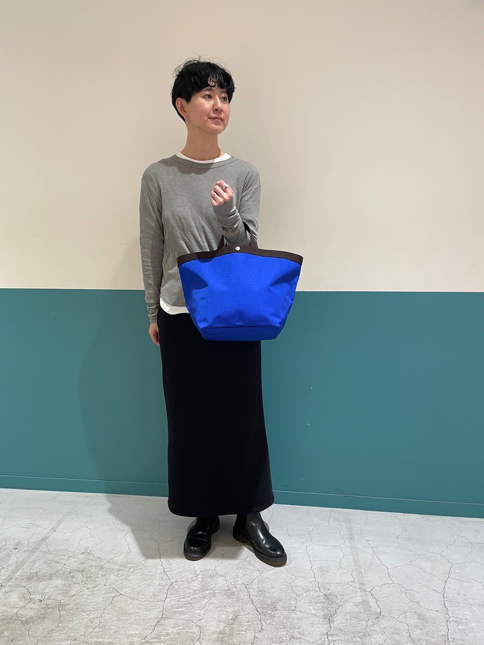 グレーと合わせて優しげに持つと普段使いしやすいですね。
