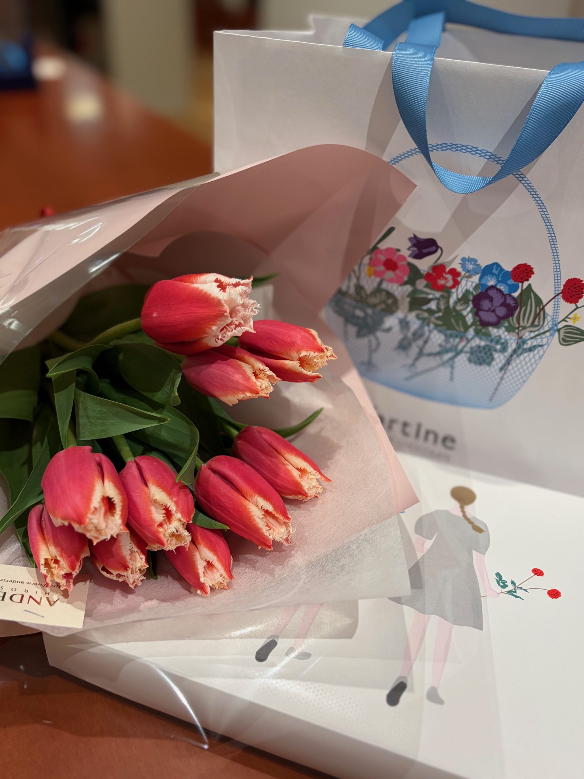 先日、いただいたお花に癒されております🌸