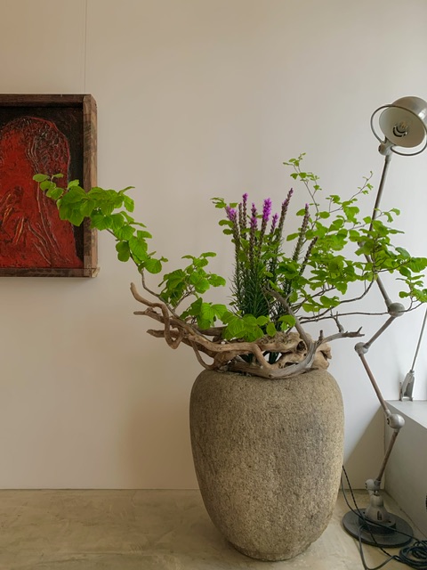 続きを読む →みなさま こんにちは メゾンのお花 ご紹介いたします 🍃 今回は鮮やかな紫色 入口には 山万作(枝) リヤトリス リヤトリスは 上の方から花が咲き始め だんだんと下の方まで開花します 🍃 カウンターの花器は アジサイ ピ…